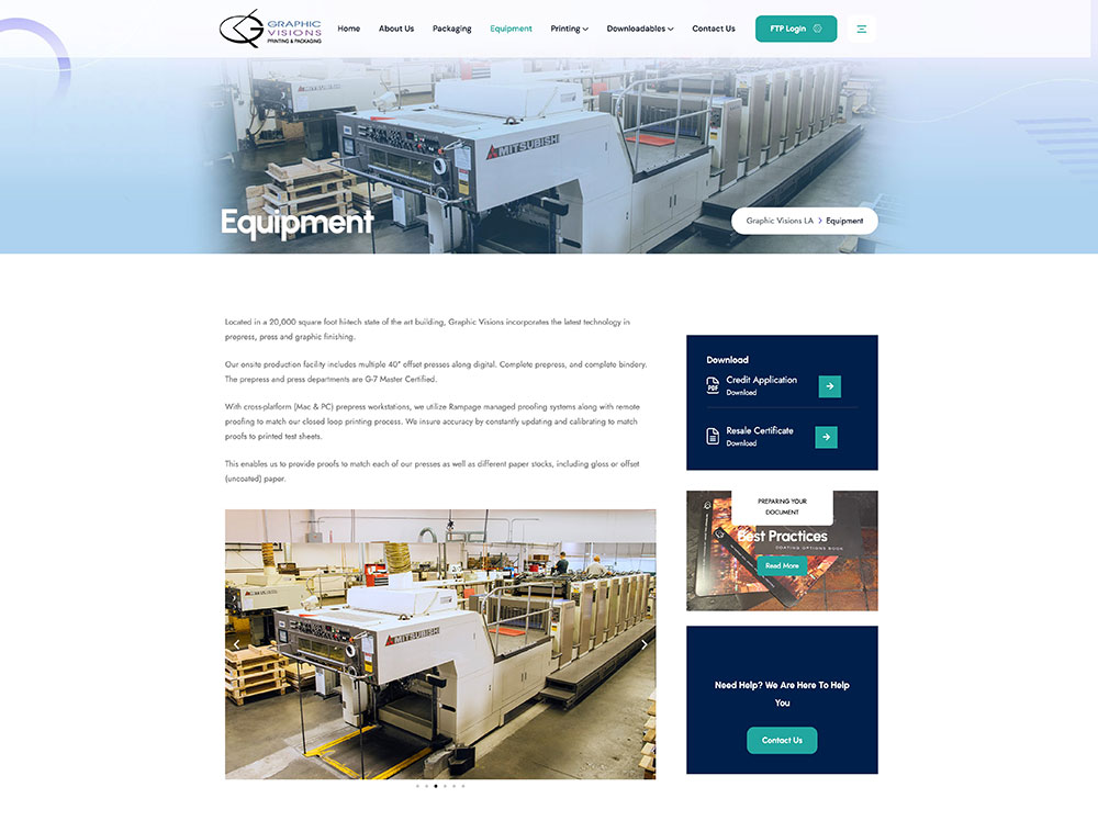 Graphics Visions went above and beyond when they decided to use video instead of images for their homepage hero. So, when you land on the site, you see a crisp, high-definition video. That video beautifully showcases Graphic Visions’ digital and traditional printers, as well as the custom-made packaging they produce for clients.